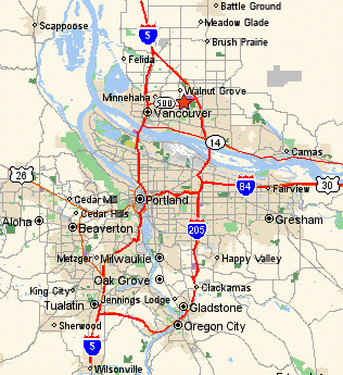 Directions From South of Portland (Using I-205 to bypass downtown Portland traffic) |