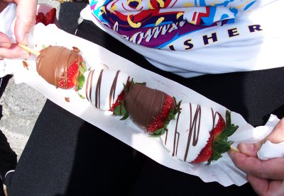 Week 156 Update It was 06:30 in Roseburg, Oregon when I stepped up on Mr. Scale and he said, "183.0 pounds!" Dotti and I were in Roseburg, because that is where my Mom's husband Jim was in ICU at the hospital. After our Bloomsday walk on Sunday, when we were checking on when the next bus was coming by to take us to our car, we had received a call from a relative that Jim had been having trouble keeping his blood oxygen level up, and they had called an ambulance to take him the 60 miles to the hospital. He has had many events similar to this and so we were not too worried at the time. On Wednesday evening, my cousin gave me call. He said that he had visited Jim and that things were far worse than we suspected. We called my mom and found that Jim was not doing well, and that Jim's sister and brother-in-law, who had been there with Mom, had to leave to do other things. Thursday, Dotti drove down to be with my mom, and since it was unclear what Jim's condition was for sure, I remained at home so I could make it in to work. Jim's condition remained unchanged, and so I completed my workday on Thursday and then again on Friday, but I drove down right after work on Friday evening. There were 5 or more doctors who were working on Jim, and each one we talked with gave very little hope that he would recover. At this time we very much fear the worse for Jim. Eating and weight – Saturday in Spokane, I weighed 185.5. At lunch, Dotti and I split a mushroom burger and fries at Sharis. Jim, Tammy, two of their daughters, Dotti and I went to the Bloomsday pavilion, afterwards, and we registered for the walk and walked around all the booths. We did quite a bit of walking before heading back home. In the evening I had a burger and vegetables bringing my total to 44.0 points for the day. Sunday, the day of the walk, I weighed 184.0 pounds. I ate my normal 5.0 point breakfast, but after the walk I had a splurge. We found a booth where they were selling smoothies. While waiting in line for one of those, a lady walked by with a long stick holding 4 huge strawberries, each covered in chocolate. They had been dipped, like they do with a cone, putting a thin layer of chocolate over them. ![]() They looked delicious, and they tasted even better. I also had my smoothie. We then stopped by Costco and I had a Very Berry Sundae. It wasn't the most nutritious food I had eaten in a while but it was enjoyable. In the evening, we went to Outback and I had burger meal, and then ordered a piece of cheesecake. It was huge, both tall and wide. By day's end, I had consumed 77.0 points. Monday morning I weighed 186.5 pounds. Since I had gained weight, Dotti didn't feel obligated to yell at me after my high point day. On the drive home I was snacking and ate more points than usual. I ended up eating 60.0 points for the day. Tuesday, I wasn't feeling well, and the scale jumped up to 187.5. That got my attention, and I held my points down to 45.5. Wednesday, the scale rose again to 188.0 pounds. I made a bigger effort to hold my points down, and ended up eating 38.0 for the day. Thursday the scale dropped to 187.5. I once again watched my points, and only consumed 39.0 of them. Friday, the scale dropped to 187.0 pounds, back into my target range. I ate 40.5 points. Saturday, the scale dropped to 183.0. Part of that was a real drop, and part of that was using my travel Healthometer scale, which normally reads about ½ pound over our Tanita. The Healtometer I have been using at home as "Mr. Scale" has all at once started reading 2 to 2.5 pounds higher than our Tanita. So, I have decided to put that Healthometer on the shelf and just go with the Tanita from now on when I am home. Dotti checked the Tanita against the WW scale before and it was right on with theirs. I figure if two scales are reading the same, one of which has been checked against calibrated scales, and the third is reading way high, it is time to stop using the high one. Exercise – I fortunately wrote some of my impressions on the Bloomsday event which follow, before we drove down to Roseburg, because it would have been difficult to do so after what we have been going through with Jim. Saturday – The day before Bloomsday. I decided to take a walk in the morning, and set out around a loop that Tammy had measured out a while back, and that I had walked before. I took my GPS out with me to take a few readings as I went. I found that that the entire loop came out to exactly 3.10 miles. I also found that there was a change in elevation from 2071 feet, down to 1979 feet, giving a change of 92 feet total. I completed the loop in 40:16, taking 12:59 per mile, and giving an average pace of 4.62 mph. With the change in elevation, I was very happy with the results, and it gave me an optimistic feeling for the walking coming up on Sunday. It also earned 10.21 aerobic points for me. Sunday – It seemed like the entire town of Spokane turned out for Bloomsday. Along with Jim, Tammy, two of their daughters, Dotti and myself, there were over 50,000 others who showed up to do the 12K race. Dotti has been ailing with her rheumatoid arthritis. Tammy has had some back problems, which have affected her leg in a painful way. Jim has a sore knee. So, we discussed what we would do for the race, and the three of them decided to walk together, along with one of Jim and Tammy's daughters. The other daughter was in a different walking group, and so she did not walk with them. I was debating whether I was going to see what kind of time I could cut, or if I would walk with the group. Tammy said that I should go for it, and Dotti said that she thought that would be okay and Jim thought that would be good as well, so my mind was made up. We all piled into Jim and Tammy's van, and drove to a mall parking lot, where we parked, and then caught a bus downtown to the starting location for the race. (Parking downtown would have been a nightmare.) We arrived over an hour before starting time, and it 