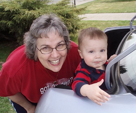 When we arrived at Jim and Tammy's house, Jim was still at work, and Tammy was about to leave for work. But we did get to say "Hi" to Tammy before she left. Jamie was there with our little grandson Hunter, and as you can see, Dotti was ready to slip him into our trunk so we could wisk him back home with us. ☺