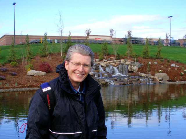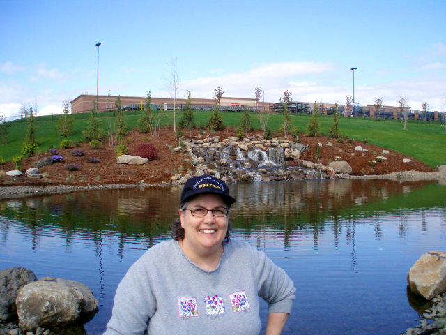 When we got close to Wall-Mart we noticed that they had finished a waterfall on the bank behind the store. I of course had to take a picture of my lovely wife standing in front of it. And Dotti took a picture of me as well. You can see the Wall-Mart name in red lights on the wall of the building behind us.