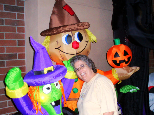 They have done a lot of work since we were last by here. And finally, how long has it been? This picture shows Dotti standing in front of the decorations they had in front of Wall-Mart that day. Yep, it's been a while.