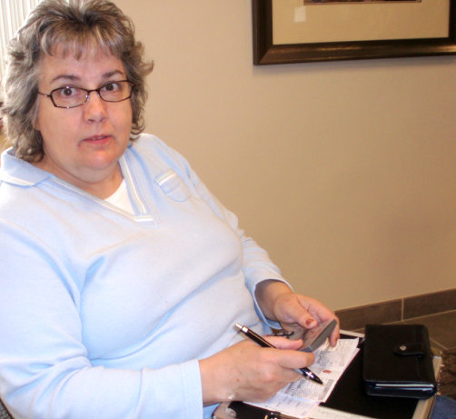While I was in with the doctor, Dotti was working out in the waiting area, having brought her "office" with her. ☺