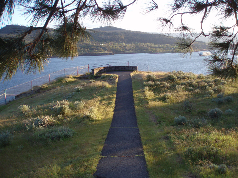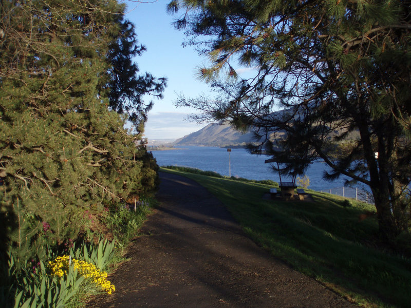 Continuing on our way on SR 14 we came to a lovely little rest area. It commanded a very nice view of the Columbia River Gorge, and even had a little "Inspiration Point" type of path down to the edge of the gorge, and this time I remembered to bring my inspiration with me! ☺
