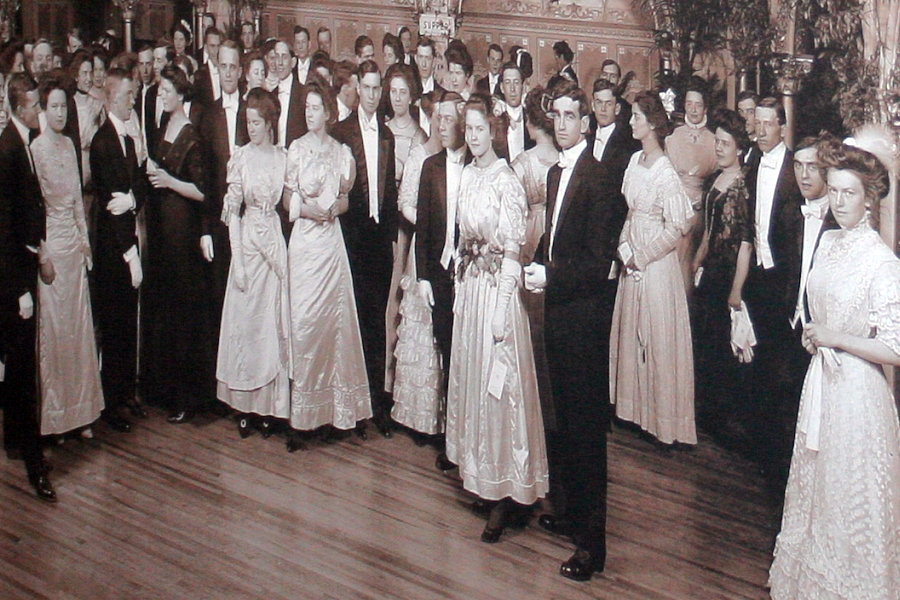 Is this a ball, welcoming some royal visitor to the fair town of Spokane? Not at all: it is the school prom of 1908. It creates a striking contrast when you compare the ladies and gentlemen shown in this picture, with a picture of the attendees of the average school prom today.