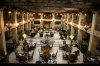 This is a view of the lobby from the mezzanine at the other end. Instead of seeing a fireplace on the opposite wall, there is Starbucks coffee counter. (I don't think that was there in 1914. ☺) This lobby was created to embrace southern Europe, with a Spanish patio design, but with a modification that is especially nice in the wet Pacific Northwest: a skylight instead of open air ceiling.