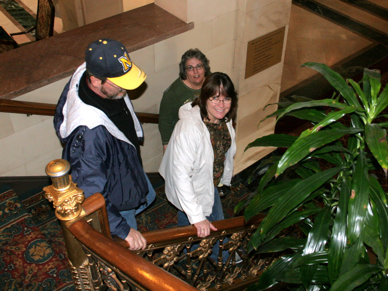 After I finished up my write up, the rest of the house was stirring awake and soon Dotti, Tammy, Jim, and I were heading down to the Davenport Hotel in downtown Spokane. I am fairly certain that this is the fanciest, most expensive hotel that Dotti and I have ever stayed at. Jim and Tammy were born and raised in Spokane, and they had always wanted to stay at this hotel, and so we made it a special event together for the 4 of us. By the time that Dotti and Tammy had made the reservations for us, there were not two good rooms next to each other. So, since it was Jim and Tammy's dream to stay there we took the lower room on the 10th floor and let them have the higher one on the 12th floor, where we had been told the view would be better. (Alas, the best laid plans do go awry, and the view from above was not as good as we had hoped.)