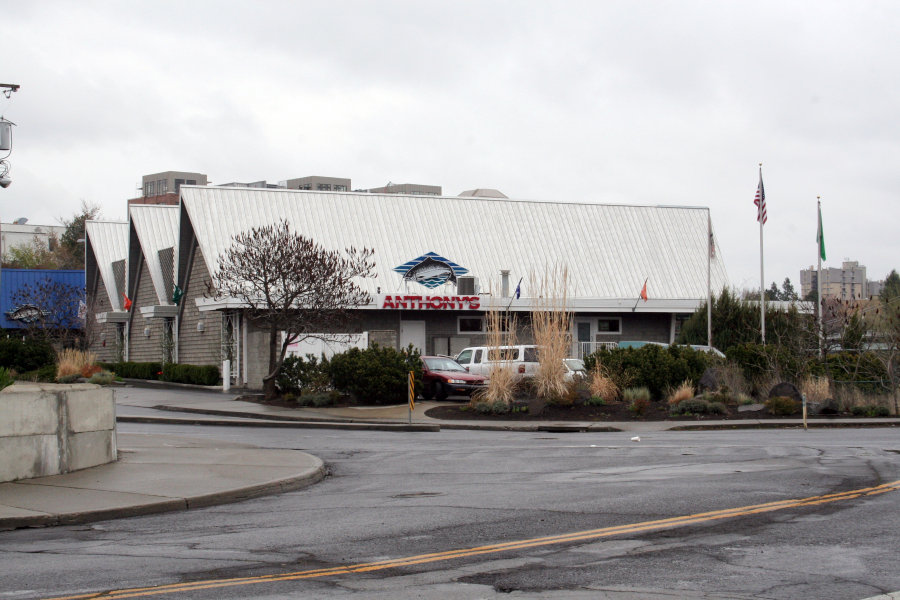 It was getting close to dinnertime and so we all decided to walk down to a restaurant to eat. We walked from our hotel down to the Spokane River and to Anthony's Seafood Restaurant. The fish on the sign over the name gives the whole story.