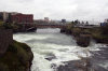 Here the Spokane Falls is being upstaged by Dotti's radiant smile. It was nice that we could put the small window panes down out of the way, which gave us a free view of the falls. Unfortunately, it also allowed the raindrops to come in and inspect us directly as well, and they get so pushy sometimes.