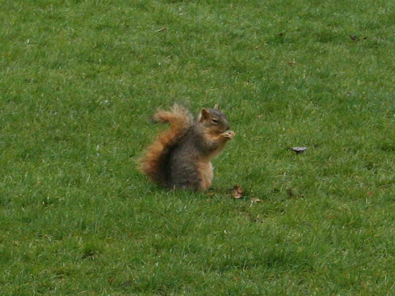 I next wanted to angle back over to the Clock Tower, so I could see it from its base. On the way, I spotted another small furry animal. ☺ What I did was to walk towards the squirrel, with camera aimed at him and clicking each step of the way. He sat still for quite a while but finally had enough of me and took off.