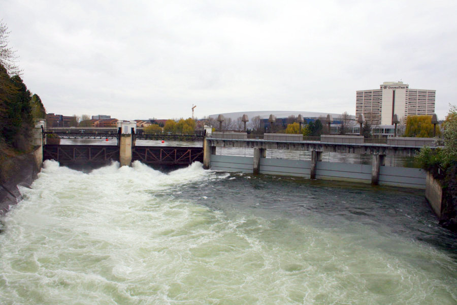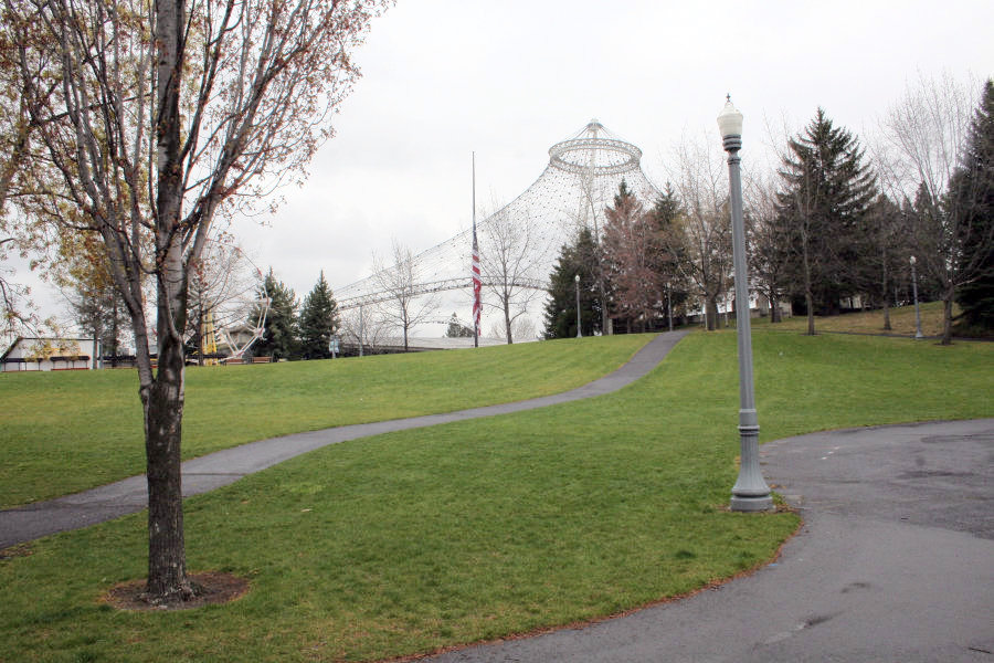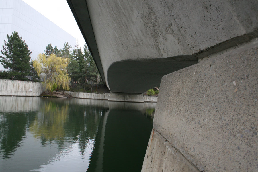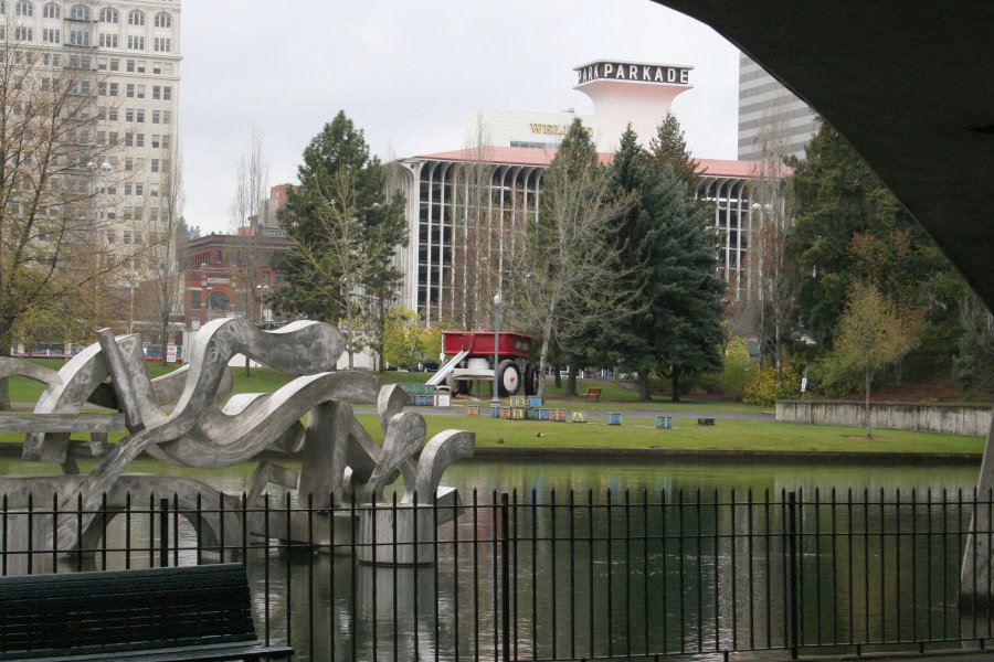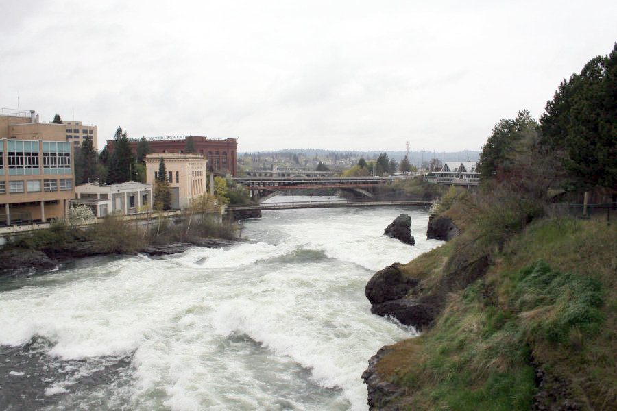 I was still standing on Canada Island but now at its opposite end from Inspiration Point. As we had seen on Thursday, there are two foot bridges running from this island and this point. This one is leading to the southern bank of the Spokane River, where the IMAX and all its friends live.