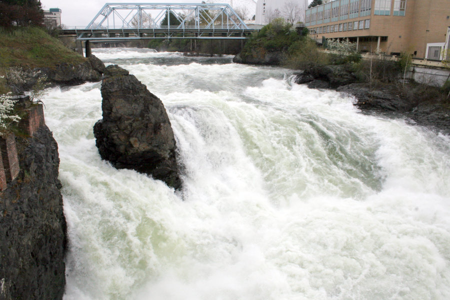 Here I am looking out from the viewing platform beneath the Monroe Street Bridge. The Post Street Bridge is just behind the falls.