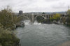 I moved out onto the bridge for this photo. The finger of rock that is sticking up will one day be washed away. It is constructed of basalt, laid down long ago, when this area was incredibly volcanically active, and the entire area was covered with lava from local eruptions. There have fortunately been no local eruptions for a long time, even by geological time scales, but the previous ones left a lot of untidy debris behind when they left. Basalt cools into fragmentary sections that are held together poorly. Water is brutally destructive to basalt, as is demonstrated by the Dry Falls in central Washington, where water eroded the falls wall 15 miles in fairly short order. This piece of rock will lose a bit of itself year after year, until it is gone. In the winter, water is especially destructive, because it will work its way into crevices, and porous areas of the rock, and then it will expand when it freezes. CRACK! And another weakness appears in the basalt structure.