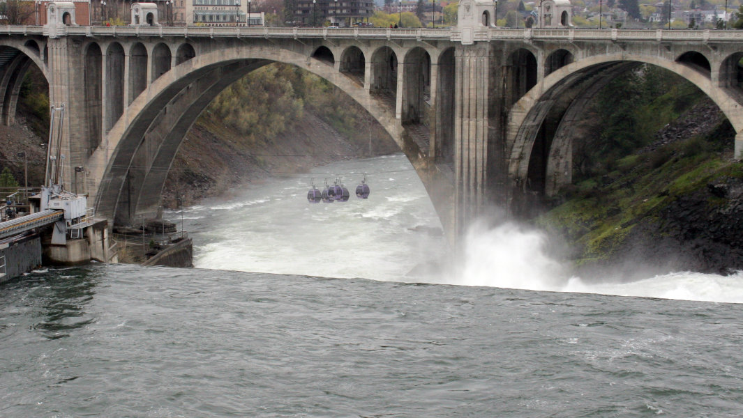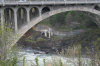 I have now come out from the Monroe Street Bridge, looped back over the Post Street Bridge, and am on the southern bank of the Spokane River. Looking beneath the Monroe Street Bridge we can see the turnaround point for the gondola ride.