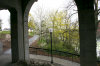 I returned to the path, and followed it to its end, where a chain link fence blocked any further advance. Looking back from here I could see the viewing platform I was taking pictures from before, and the falls. The concrete of the bridge above me seemed to form a chamber in a cathedral.