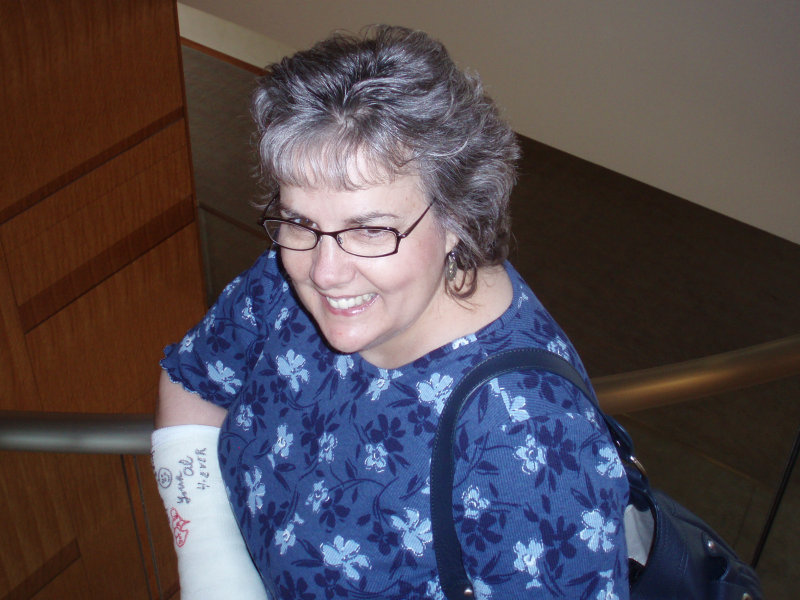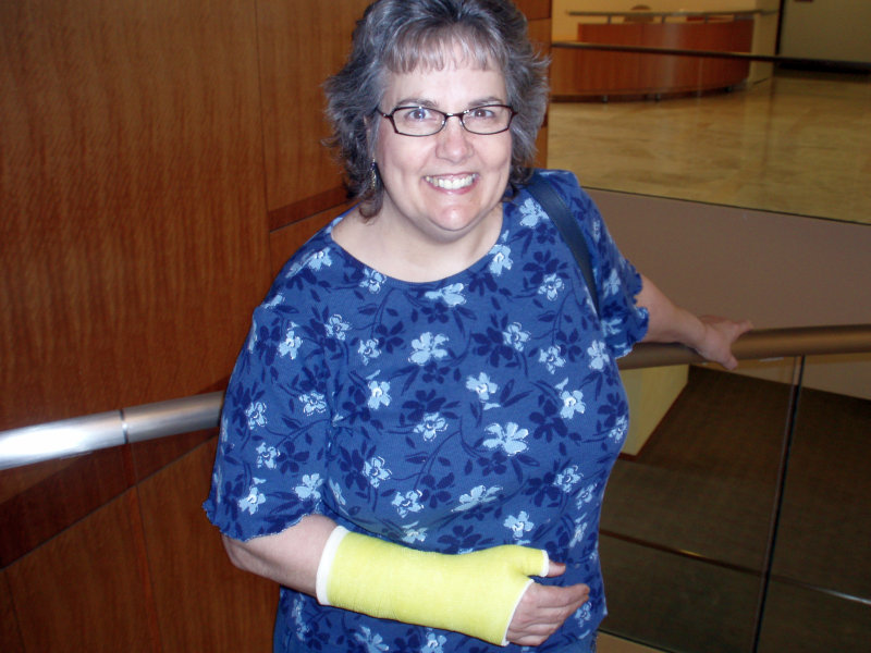 Once casting class was over, Dotti had a nice white covering for her right arm, and the doctor said that anything that she could do, she would be okay doing. (The cast should keep her safe.) —I should mention that these orders were modified slightly by the orthopedist, who said "No heavy lifting!"