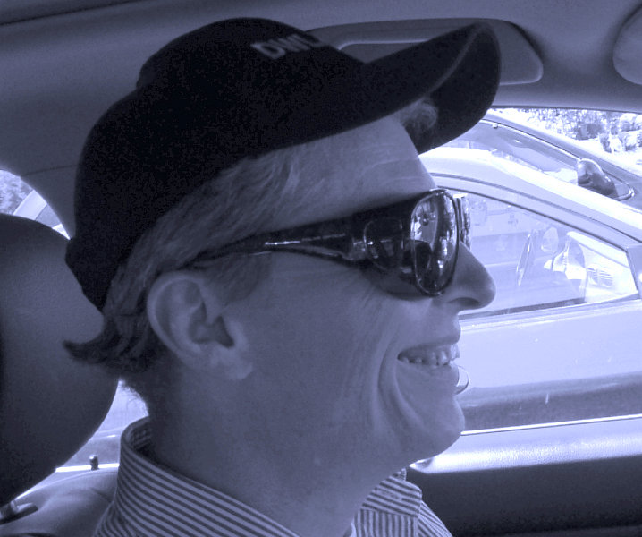 In the quiet of the car I was enjoying the pleasant weather and playing around snapping pictures with my camera. I took this picture of myself just before Dotti appeared with package in hand.