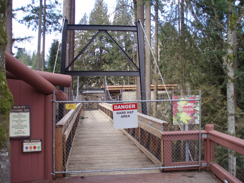 The last couple of times that Dotti and I came to the zoo they had been working on a new section of trail, with some new animal exhibits. This is what we saw when we came by in February. The bridge was pretty well completed but there was a chain link fence blocking our way to the Cascade Canyon Trail.