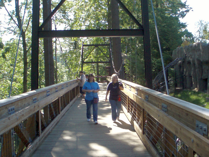 This time we made it across the bridge, and I took this picture from the other end of that bridge as the ladies approached across it.