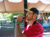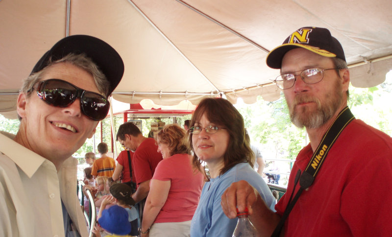 The heat and the exercise were taking their toll on us, and so we all agreed that it was time to take the train ride. As we were waiting in line, Dotti borrowed my camera to take this shot. Jim and Tammy are the young folks on the right, and the old guy on the left is yours truly.