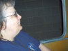 Jim is enjoying his Coke, and we are on the train getting ready to ride. Behind Jim you can see the covered area where we were standing only minutes before as we waited for the train to arrive.