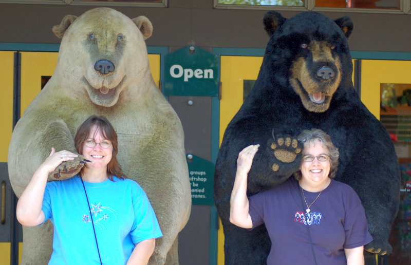 I guess they were looking for the tall silent type. ☺ Outside the gift shop, the ladies posed with two huge stuffed bears.