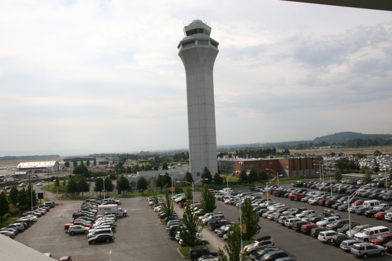 I took this picture from the short term parking garage, looking at the tower at Portland International Airport (PDX), just after we arrived. We had to take an elevator down to the basement level.