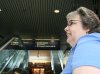 We had to go up two sets of escalators, because the tunnel was located below the street-level luggage pick up area; and the lugage area was located a floor below the terminal gates. Here were were almost up to the street-level, and the escalator to the terminal is visible in the background. My beautiful wife sure brightens up each photo she is in!