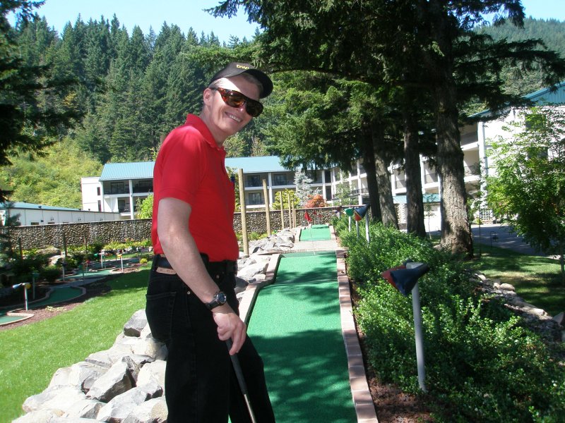 Wednesday, we spent in the hotel and went up and down the stairs many times, and went out to the miniature golf course and played through a couple of times.