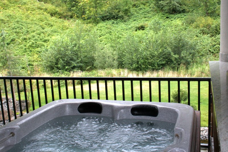 Looking out over the hot tub, you can see that we had privacy behind us as well, with a sharply rising hill, climbing up hundreds of feet and blocking view into our privacy.