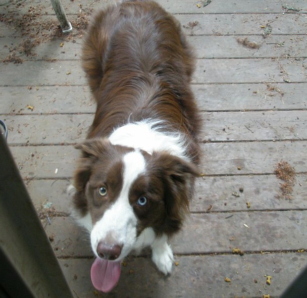 This is Buddy. He is one very friendly dog. I had never met him before, but he treated me like is best friend, whom he had been dying to see again, the very first chance he got. I opened up the door just a crack, and he was up on it and sticking his nose inside trying to lick me.
