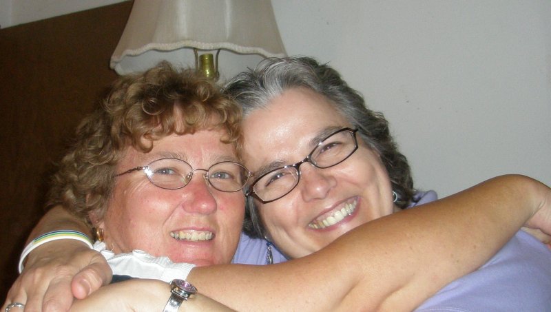 Here are Becky and Dotti during our visit, and after our lunch at Sweet Tomatoes. We had a lot of fun visiting and snapped this shot during one of their less serious moments. ☺