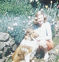 In this picture, she is 14 years old, and she is with her very first collie. It reminds me of Lassie, a dog on a TV show I used to love. It had June Lockhart as Mrs. Ruth Martin, and Jon Provost as Timmy Martin. (Lassie the collie was actually played by a string of male dogs, but each episode they would say, "Come on girl!" ☺) I was about the same age as the actor who played Timmy at the time, and so it helped me to relate to the show.