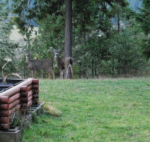 As we came down off the hill, two deer came up our driveway, and looked at us. We saw 5 deer in just a couple of hours and it was nice, especially for Dotti who loves deer.