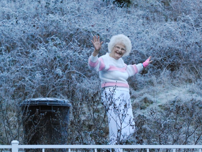 In the evening, after dropping Mom off, Dotti and I drove back to the property to collect our stuff and say our goodbyes to the house and deer. It was dark and plenty cold. I put on my work gloves and moved the stuff out to the covered carport and Dotti once again organized it into the van. This time she had to leave room for the stuff we still had a Moms (our computers and suitcases, as well as a couple of things we had picked up shopping in Roseburg ), but she did a wonderful job getting it all in, as usual.