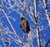 It was a cold morning, at least for us pampered Pacific Northwesterners. When the thermometer falls below 30° we start to shiver. But the sun was shining brightly and that made for some gorgeous views on the way home. The sky was bright blue and that made a great background for this shot of a bird that Dotti took!