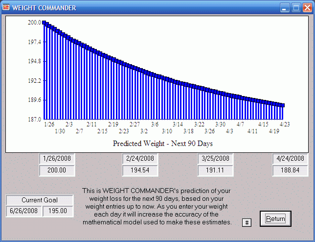The Weight Commander future graph is more surprising still. It shows me falling to around 189 in April. So, I must be doing something right, even when it feels like I am falling on my face too many times.