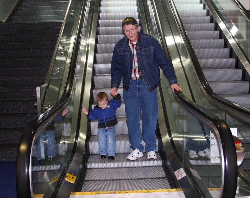 Grampy Al soon found out that Hunter likes escalators, and so naturally we went up and down this one more than once. Hunter liked to walk on them himself too, especially on the way down.