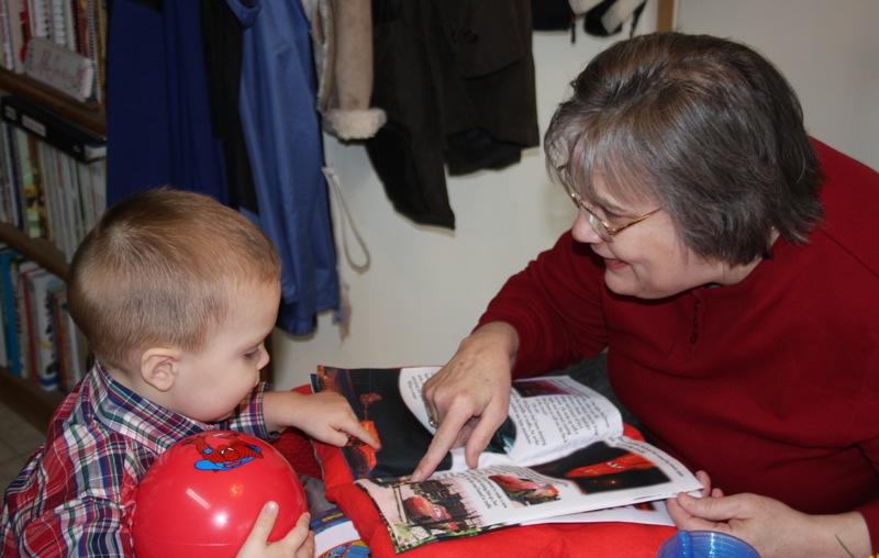 Before long, after we had stopped for lunch at Sweet Tomatoes for lunch, and then made it home, Grammy Doe was reading a book to Hunter and showing him all the pictures in it.