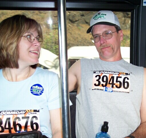 Here is our "niece" Jamie, and Dotti. We are all excited about the race, and we were just about to leave to catch the bus about this time.