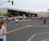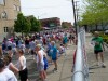 The route that I had taken to get here was up the sidewalk to the right of the fence, where you can see another finisher with his tee-shirt in hand heading towards the camera. From the tee-shirt area, there was a break in the fence where we could get around the crowd, and walk across a vacant lot, to get to sidewalk outside the fence. My legs didn't want me to do a lot of extra walking by this time, and there didn't seem to be any easy way across the fence. So, I headed back to the tee-shirt area to wait for the others.