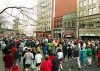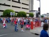 This was taken from the same point as the previous picture but looking in the opposite direction. After crossing the finish line, the participants walked past the point where I was standing, and on for the rest of this block. At the next corner they turned right and headed into the area where the shirts were being handed out. Along the side of the walkers you can see finishers who are looking to meet up with friends or family.