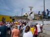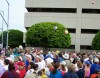 The crowd was split up into channels between the many tee-shirt tables, which continue well out of the photo to the left. So, there was not much backup for those who had not yet reached this area. The whole process was very efficient, and the whole time the lady on the microphone was keeping the people moving along so they didn't congregate in the pathway after they picked up their shirts.