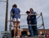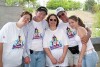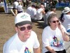 There was a girl on the mike keeping a steady patter of instructions and motivational comments. She kept pressing the people to keep moving through the area, and also made announcements calling out people's names and telling them where to meet their family or friends. I spent most of the time that I waited under this platform where I could see the others when they finished. As it turned out, Dotti spotted me first and came over after they had picked up their shirts.