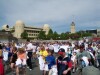 While waiting there were many beach balls that were brought out and bounced around. You can see that some of them get quite high. As soon as one gets knocked out of sight, someone blows up another one.