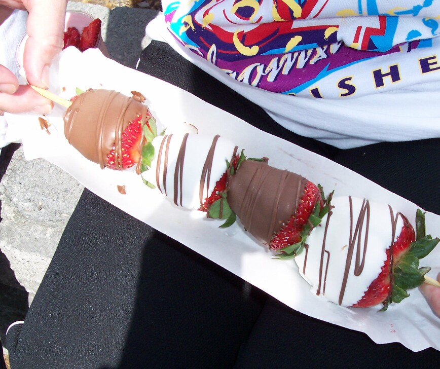 Misty has caught up with us just after we have discovered a delightful treat: chocolate covered strawberries. Misty is enjoying hers while Aunt Dotti is on her phone talking with LeRoy.