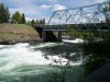 Here we are walking beside the Spokane River. Ahead you can see a bridge. That is the same bridge that was behind us when we took that series of pictures right after the race (images 45 to 51). In those pictures were standing nearly straight ahead from this view, but just off to the left behind the building there. In those other pictures we could see that the Spokane River was divided into two parts. We are here walking down by the river on what would have been the "right" section, in the other images. The other branch of the river lies just on the other side of the rock island you can see to the right in this picture.