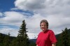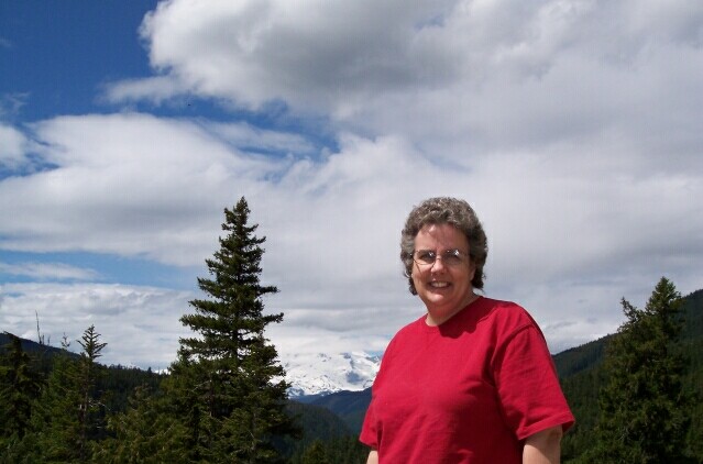 This is not our normal route home, but we thought we would try it out because we heard that it ran close to Mt. Rainier. It did, but Rainier was in the clouds for the most part. You can just see the base of it behind Dotti.