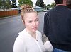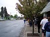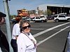 We are in line now, waiting for the bus. This is Jamie (isn't she cute?!), the mother of our grandson Hunter. We didn’t get a chance to take her picture while we were back at the house, because she and her dad Jim (his back in shown here) were driving Hunter over to his babysitter. (Jamie was understandably very nervous leaving him with someone other than a family member.) |