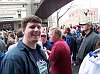 Looking behind us towards Washington Street, the crowd is just as tightly jammed together. Several beach balls are visible, with the closest being at the lower left of the picture. People are ready to get started. (And that enclosed walkway above the crowd was looking mighty tempting to get in out of that cold.) |