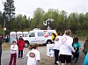 The News media are all over the Bloomsday Race each year. This is a KREM Channel 2 van, with a robotic camera on top, watching the racer go by. Who ever was operating the camera had to be warmer than we were at this time. The people you see lined up in the background are not waiting to shake the news reporter's hand. The "Honey Buckets" always have a long line anywhere along the Bloomsday Race course. |